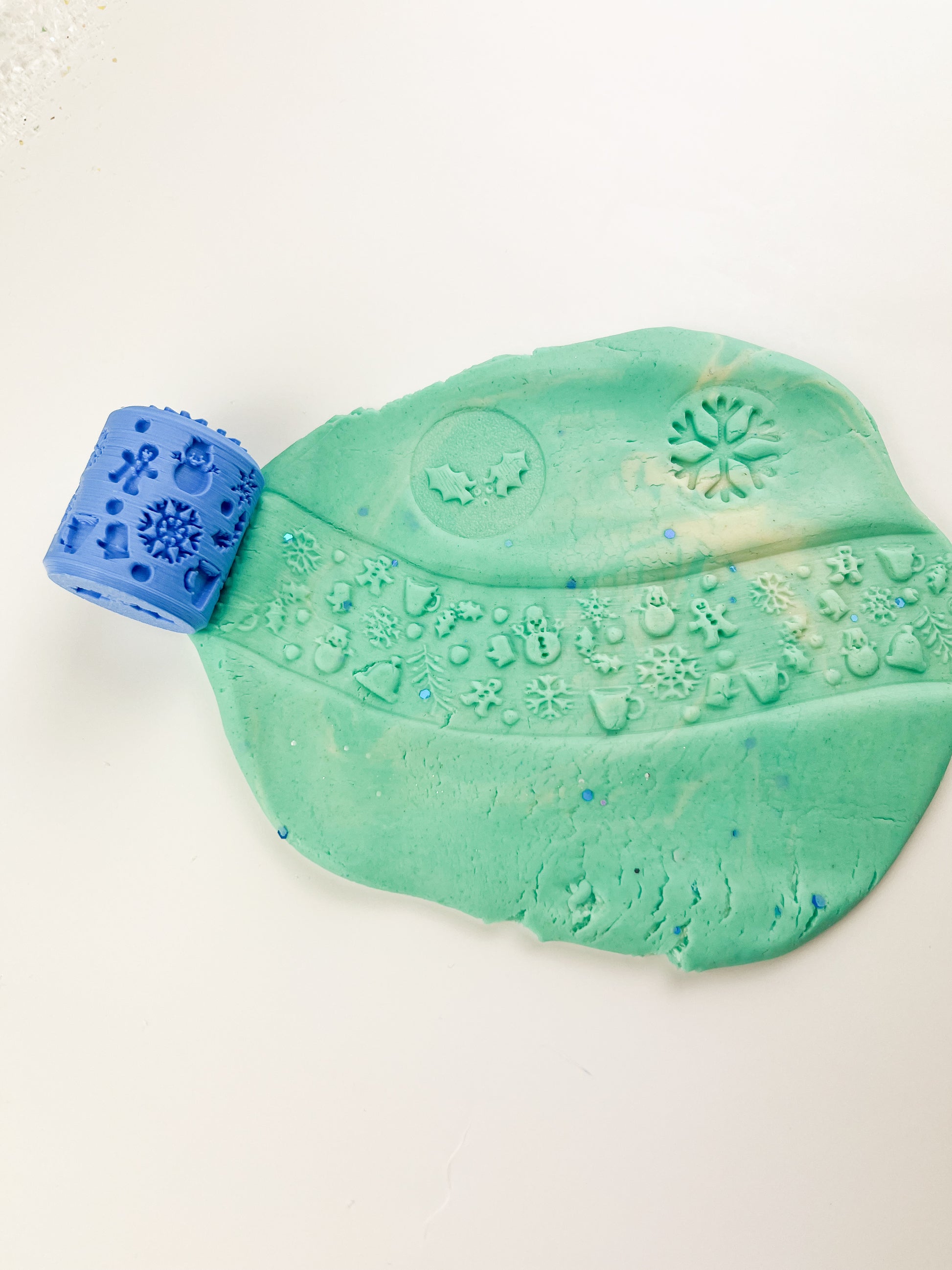 Festive Christmas imprints – roll out snowflakes, holly, baubles, and classic Christmas icons